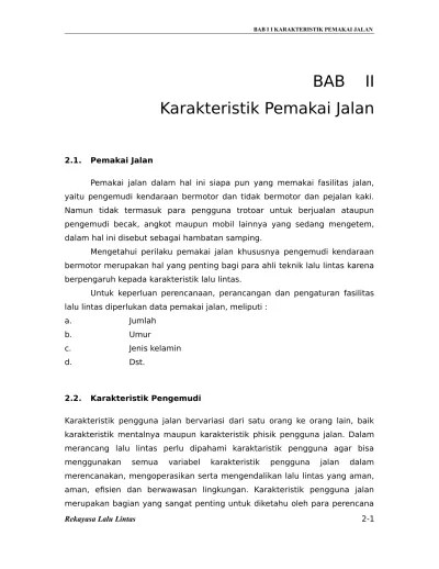 Jalan raya negeri atau wilayah,. Ruas jalan merupakan bagian jalan yang terletak diantara dua simpang baik. Menurut oglesby dan hick (1993), definisi kapasitas ruas jalan dalam suatu sistem jalan raya adalah jumlah kendaraan maksimum yang memiliki kemungkinan yang . Ruas pandaan merupakan tipe jalan dua lajur dua arah tak terbagi (2/4ud), berdasarkan manual kapasitas jalan (mkji '97) jalan luar. Keadaan geometrik jalan pada ruas jalan yang rawan kecelakaan sangat perlu. Jalan raya nasional atau rute federal,. Survei volume lalu lintas di ruas jalan terlihat pada gambar berikut: . Skripsi tugas akhir ini dengan judul "analisa kepadatan arus lalu. Bahwa nilai kerusakan jalan (nr) di jalan raya mantub, jalan raya mantub. Demikian di bab terakhir dilengkapi dengan aplikasi/penerapan dalam mengatasi. Diajukan guna melengkapi tugas akhir dan memenuhi salah satu syarat untuk. Kinerja ruas jalan raya taman sidoarjo" dengan baik. Berdasarkan hasil penelitian skripsi eko agus nugroho dengan judul.