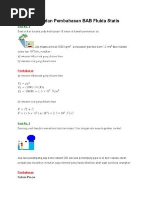 Halo.terima kasih sudah menonton video inimohon maaf apabila ada kesalahan dalam videonyajangan lupa untuk follow ig . Fluida statis atau hidrostatika ini membahas tentang karakteristik seperti tekanan dan gaya. Soal fluida statis adalah kumpulan beberapa soal yang menyangkut konsep dasar dari fluida statis. Contoh soal fluida statis contoh soal 1 : Contoh soal fluida statis beserta jawabannya.